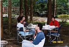 最高の贅沢ですな!車組みは早速バーベQの準備!手馴れたもので、あっという間にセッティングOK.あとは料理の下ごしらえ。