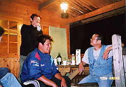 ランタンに灯りを灯してバイク談義。