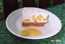 今回初のデザート。生地はビスケット、ヨーグルト風味のタルト?