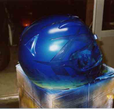 らしさを出すために、エアブラシを使ってフラッグに光と影をつけます。ついでにあいたスペースにオーナーの星座を入れてみる。サソリなんですけど、チョット妥協してフリーハンドで吹いたので、ぼけてます。